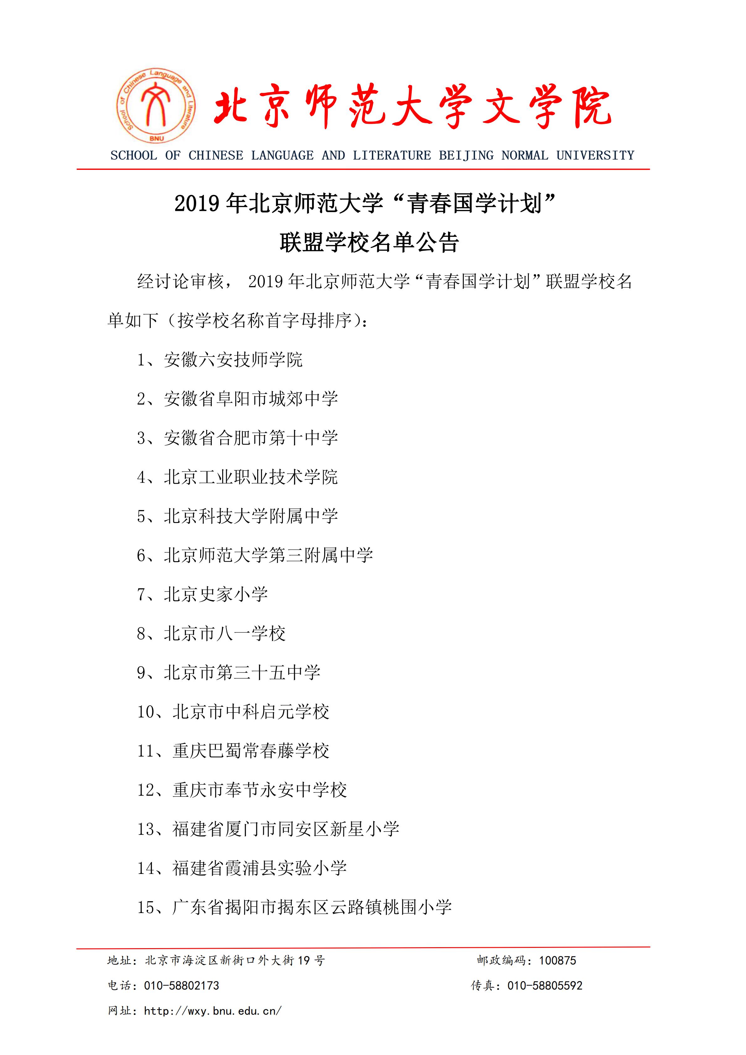 2019年成人短视频 “青春国学计划”联盟学校名单公告