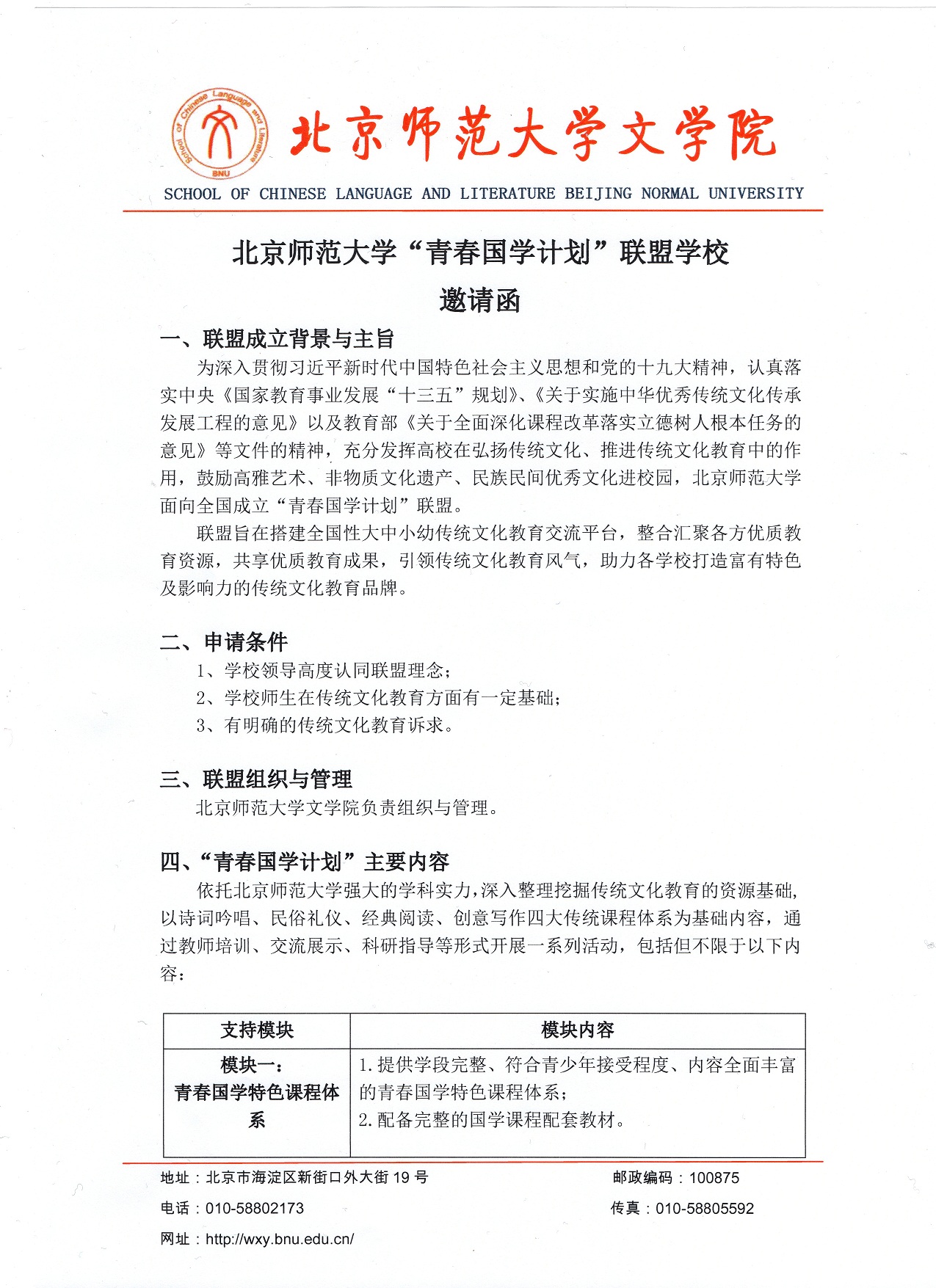 成人短视频 “青春国学计划”联盟学校 邀请函