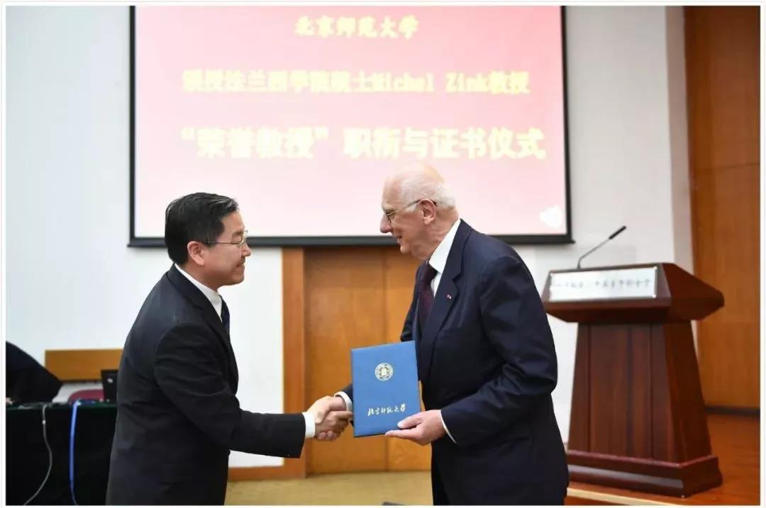 “跨文化研究”系列讲座(126)丨成人短视频 授予法兰西成人短视频 Michel Zink院士“名誉教授”职衔并颁发证书